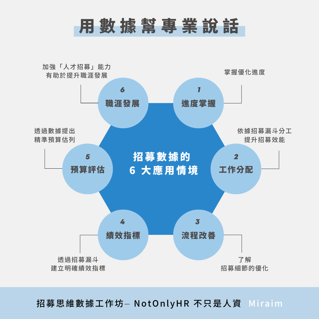 教你如何針對「進度掌握、部門分工、流程改善、績效指標、預算評估、職涯發展」等 6 大面向,導入數據思維進行優化,並以工作坊形式,透過分組互動交流,討論出最適合自身企業的招募數據策略!