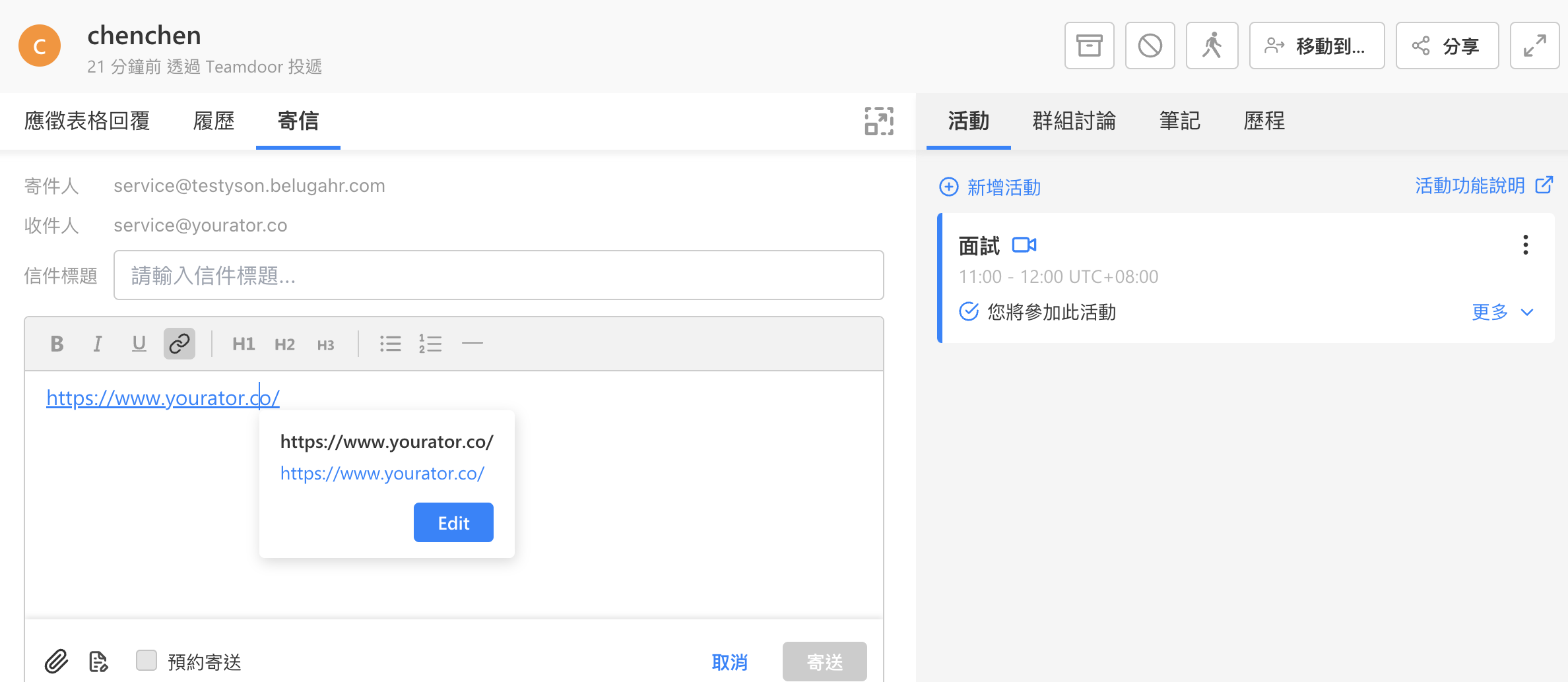 !小提醒:在信件內容中也可以直接貼上網址,點擊時可以直接編輯相關內容