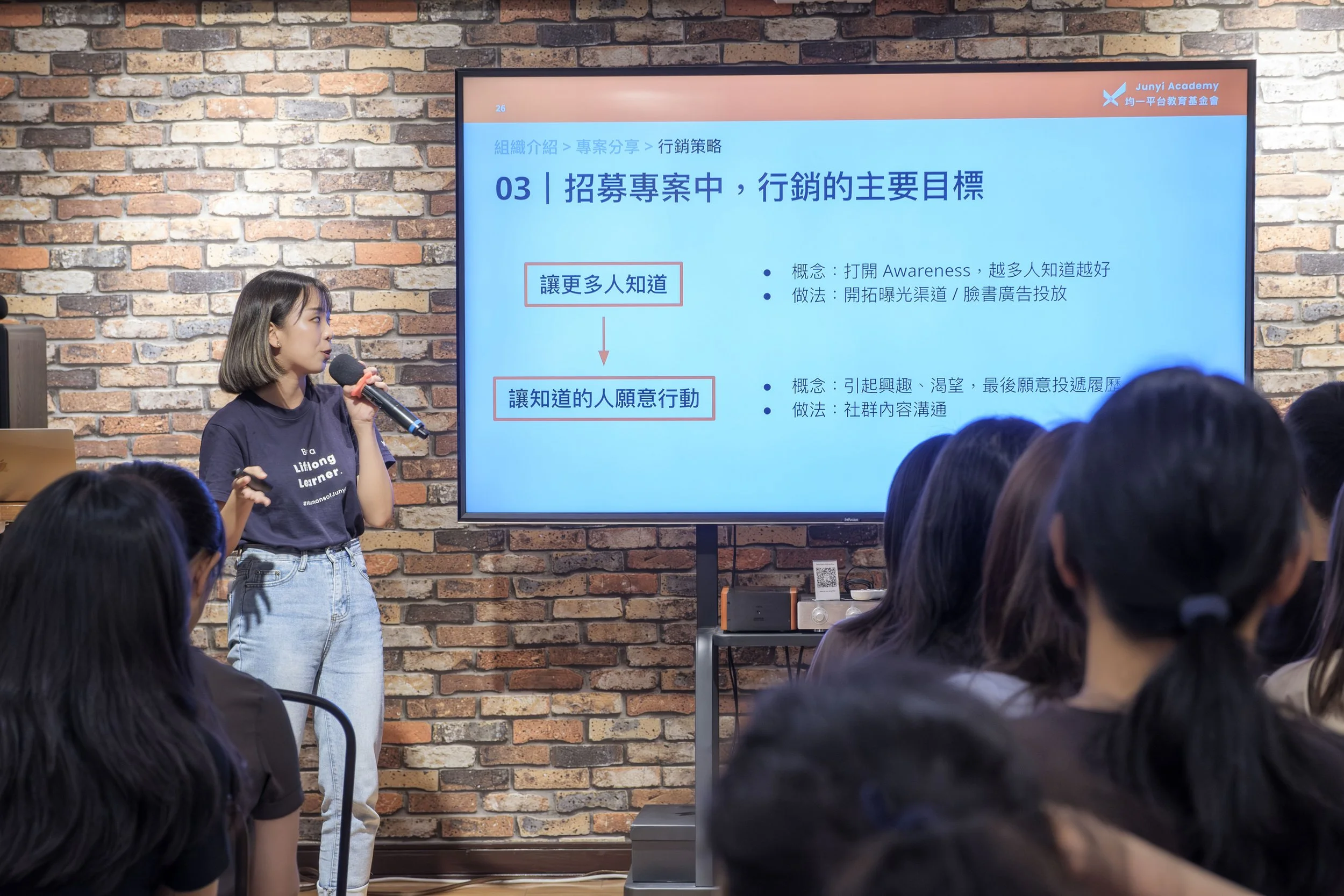 在這次專案中負責行銷策略的 Gina 表示,行銷的目標是:「從讓更多人知道,再到讓知道的人願意行動。」因此採用了 AIDA 模型來規劃招募期間的行銷內容。