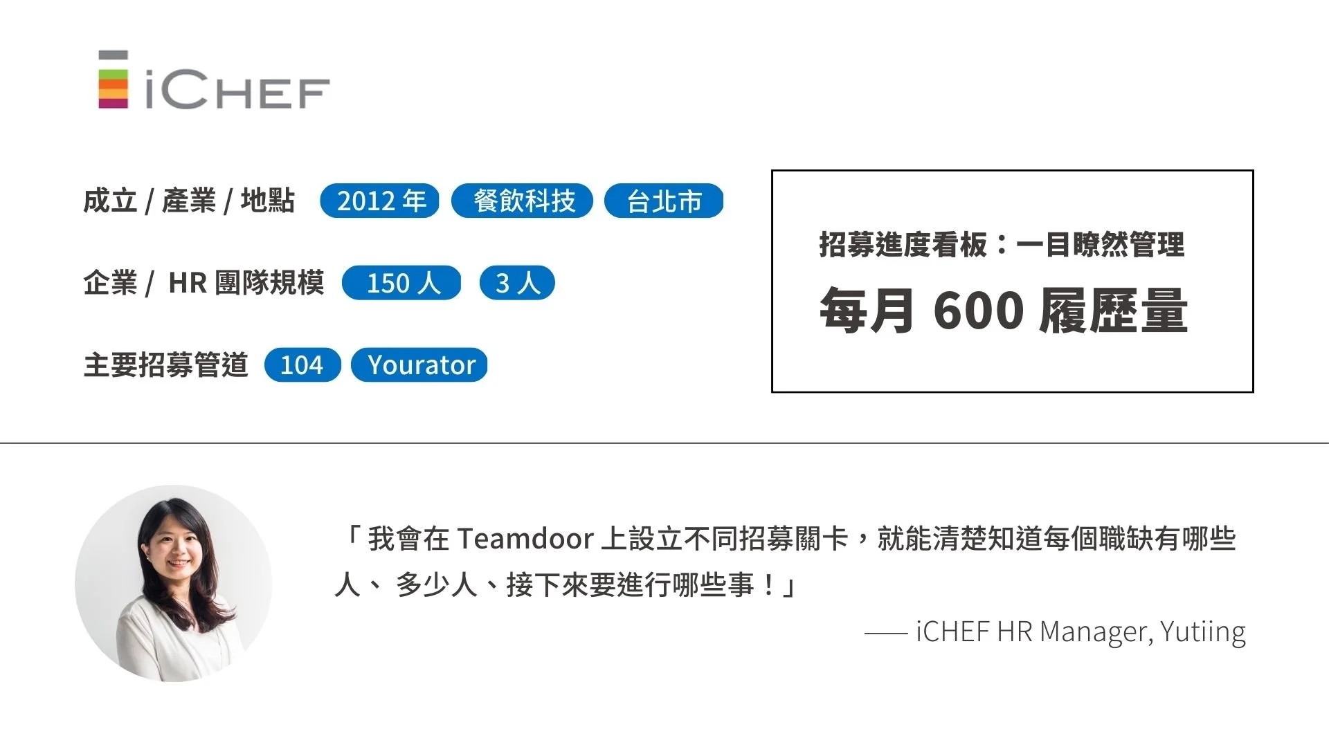 Teamdoor AI 招募工具,協助 iCHEF 輕鬆、高效、視覺化管理每月近 600 位人選!